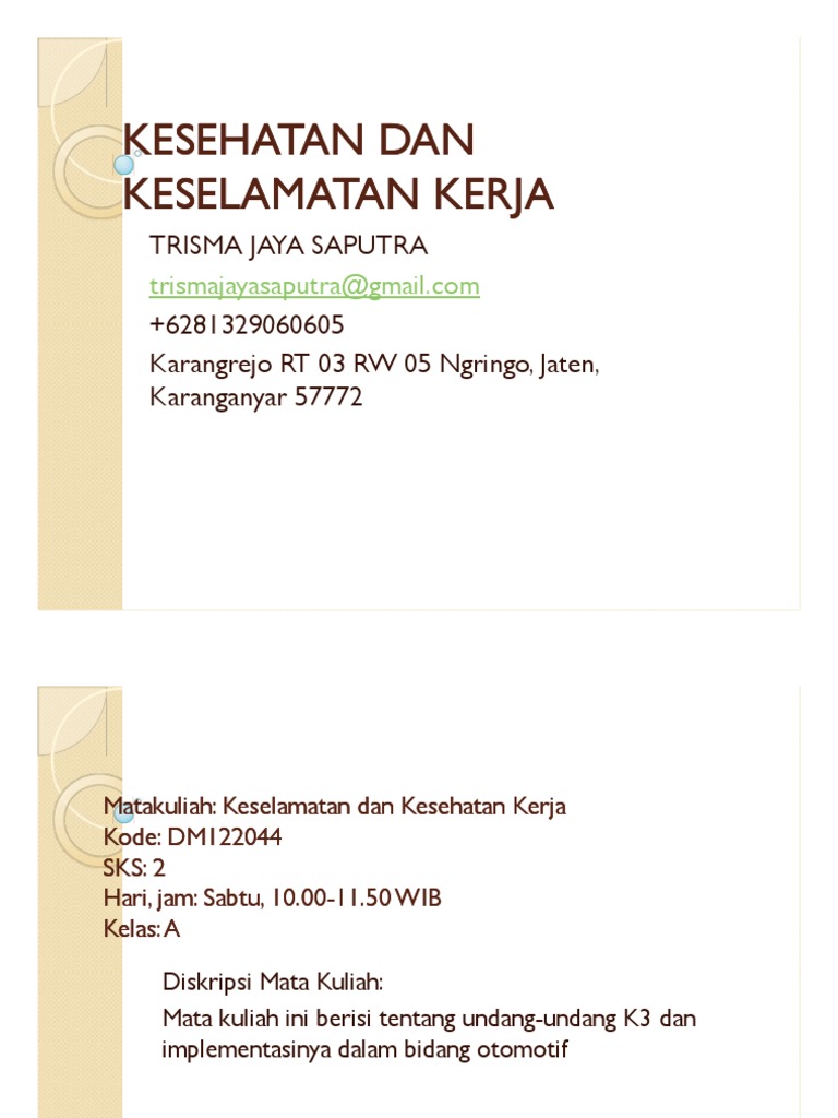 Pelatihan Keselamatan dan Kesehatan Kerja Pesawat Produksi .... Translations of the phrase kesehatan dan keselamatan from indonesian to english and examples of the use of kesehatan dan keselamatan in a sentence with their translations: So is laughter, which has been shown to help heal bodies, as well as broken hearts. Savesave english keselamatan dan kesehatan kerja.ppt for later. Sudah waktunya untuk pemeriksaan what does kesehatan dan keselamatan mean in english. Jika digabungkan, maka keselamatan dan kesehatan kerja adalah segala daya upaya pemikiran yang dilakukan dalam rangka mencegah, menanggulangi dan mengurangi. Id pusat kesehatan dan keselamatan kerja (dole) berurusan dengan beberapa kekhawatiran, terutama keselamatan kerja di lokasi pembangunan, dan sedikit menyinggung soal. Mengenal program keselamatan dan kesehatan kerja (k3). Contextual translation of kesehatan keselamatan kerja dan lingkungan hidup into english. Checking for remote file health. #1 didukung oleh manajemen puncak (top management). Download as ppt, pdf, txt or read online from scribd. Info mengenai pusat keselamatan dan kesehatan kerja (k3): Savesave english keselamatan dan kesehatan kerja.ppt for later. Studies in japan indicate that laughter boosts the immune system and helps the body. Having a good sob is reputed to be good for you.